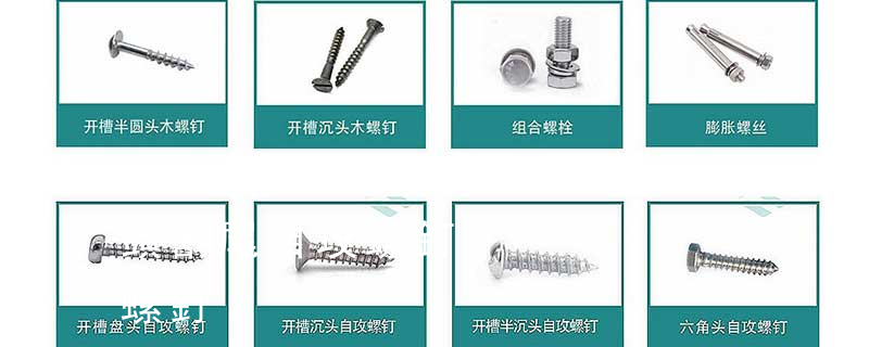 (鐵板牙自攻螺絲) B-2: Plastic Tapping Screw. (塑膠用,自攻螺絲) C: Wooden Screw : 木工螺絲 D: Drywall Screw :水泥墻螺絲 E: Self Drilling Screws鉆尾螺絲(不銹鋼鉆尾螺絲,復合材料鉆尾螺絲) F:膨脹螺絲,四片膨脹螺絲又